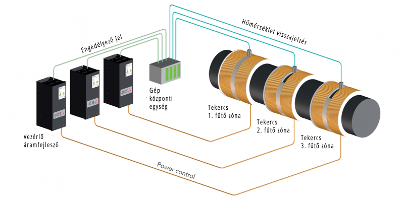 Extruderek, fröccsöntő- és a fuvóformázó gépekre tervezett induktív palástfűtő rendszerek segítik maximalizálni a fűtő teljesítményt és csökkenteni a költségeket.